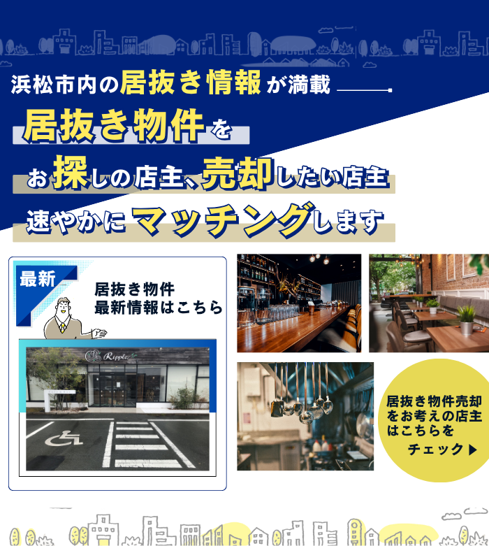 飲食店や美容サロン、事務所などの閉店時に内装、設備などそのままの状態で次のオーナーへ売却して店舗を引き継いていただくことです。